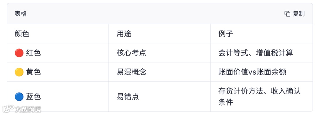 红笔标重点(如存货计价方法)