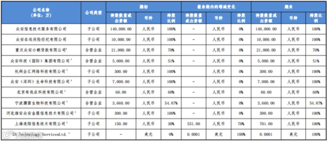以下为众安保险子公司、合营企业和联营企业情况(截至2019年一季度末)