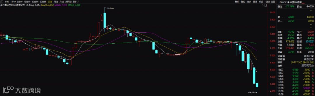 今日,承兴国际控股亦出现了杀跌的情况,且近期连续大跌。