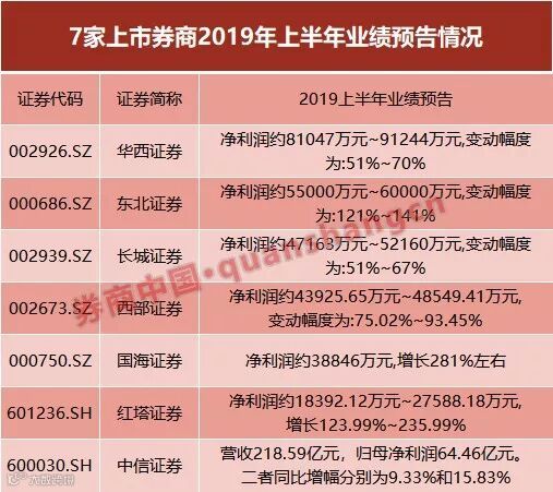 据记者梳理,连日来,已有7家上市券商陆续发布2019年半年业绩预告。虽然数家券商都进行了计提资产减值,但是并没有影响业绩同比增幅。已公布7家券商上半年业绩均实现较大增长。