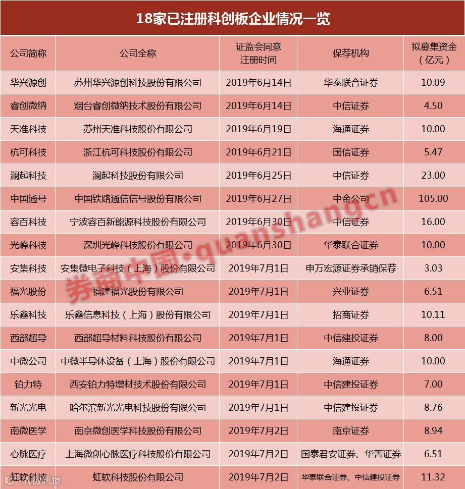 其中,中金公司保荐的中国通号拟募资金额达到105亿,为首个科创板“巨无霸”;招商证券保荐的乐鑫科技拟募资10.11亿元;兴业证券保荐的福光股份拟募资6.51亿元,它也是福建省首家取得证监会同意科创板注册的企业;国信证券保荐的杭可科技拟募资5.47亿元,申万宏源证券承销保荐保荐的安集科技拟募资3.03亿元。