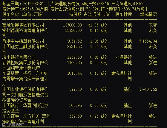 Choice数据显示,截止今年一季报,东证资管、交银施罗德、万家基金、富国基金、宝盈基金、广发基金持有超过500万股。