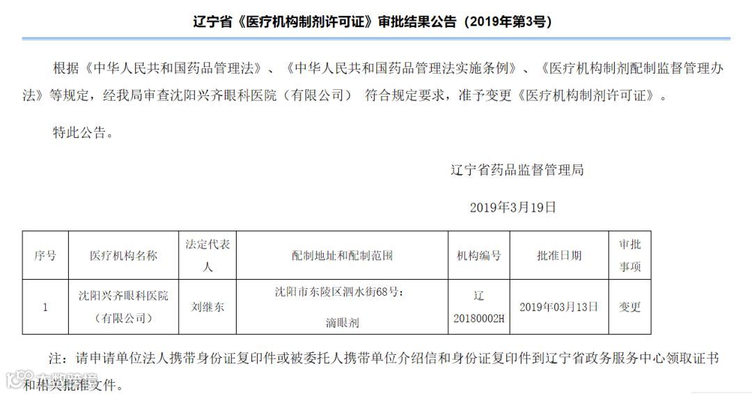 根据辽宁省药监局的公开信息,1月28日,该局批准沈阳兴齐眼科医院的硫酸阿托品滴眼液作为医疗机构制剂使用。医疗机构制剂俗称院内制剂,是指医疗机构根据本单位临床需要经批准而配制、自用的固定处方制剂。在严格的新药审批之外,允许由省级药监局审批院内制剂主要是为了解决临床急需的问题。