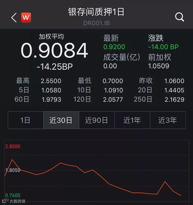 此外,隔夜Shibor下行15.1bp报0.914%,创逾10年新低;7天期下行28.7bp报2.032%,创逾4年新低。