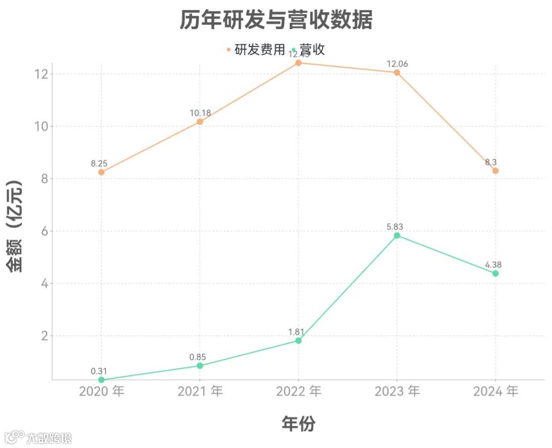 作为技术驱动型企业,摩尔线程持续维持高强度研发投入,2020-2024 年累计研发费用达 51.22 亿元,是同期累计营收(13.17 亿元)的 3.89 倍,具体年度研发数据如下表所示: