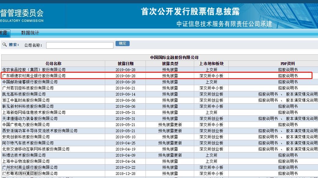 证监会官网信息显示,上周提交A股上市申报材料的广东顺德农商行,日前获证监会受理其上市申请,并在6月28日晚披露招股说明书。
