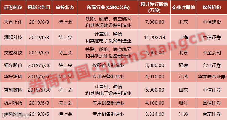 而在首批3家过会后,6月11日、13日科创板上市委还将召开第2、3次审议会议,审议福光股份、华兴源创、睿创微纳、澜起科技、天宜上佳、杭可科技6家企业发行上市申请。