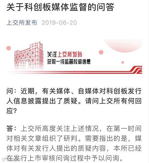 20日早间,上交所就曾发布问答明确表态,指出高度关注自媒体、媒体质疑稿件情况,在第一时间对相关文章组织了研判。需要指出的是,媒体对有关发行人提出的质疑内容,上交所已经在发行上市审核问询过程中予以问询。