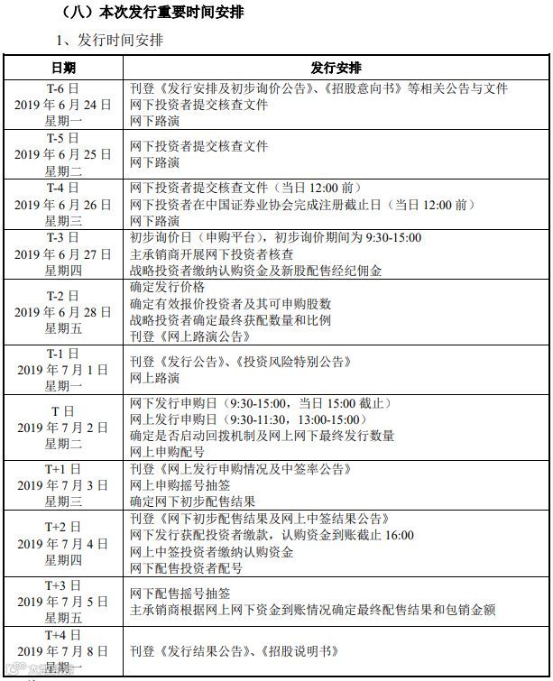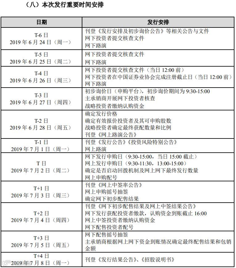 参与本次网下发行初步询价的公募产品(除科创主题封闭运作基金与封闭运作战略配售基金外)、社保基金、养老金、企业年金基金、保险资金、合格境外机构投资者以及符合一定条件的私募基金管理人在2019年6月19日(T-6日)前20个交易日持有上海市场非限售A股股份和非限售存托凭证总市值的日均值为6000万元(含)以上。
