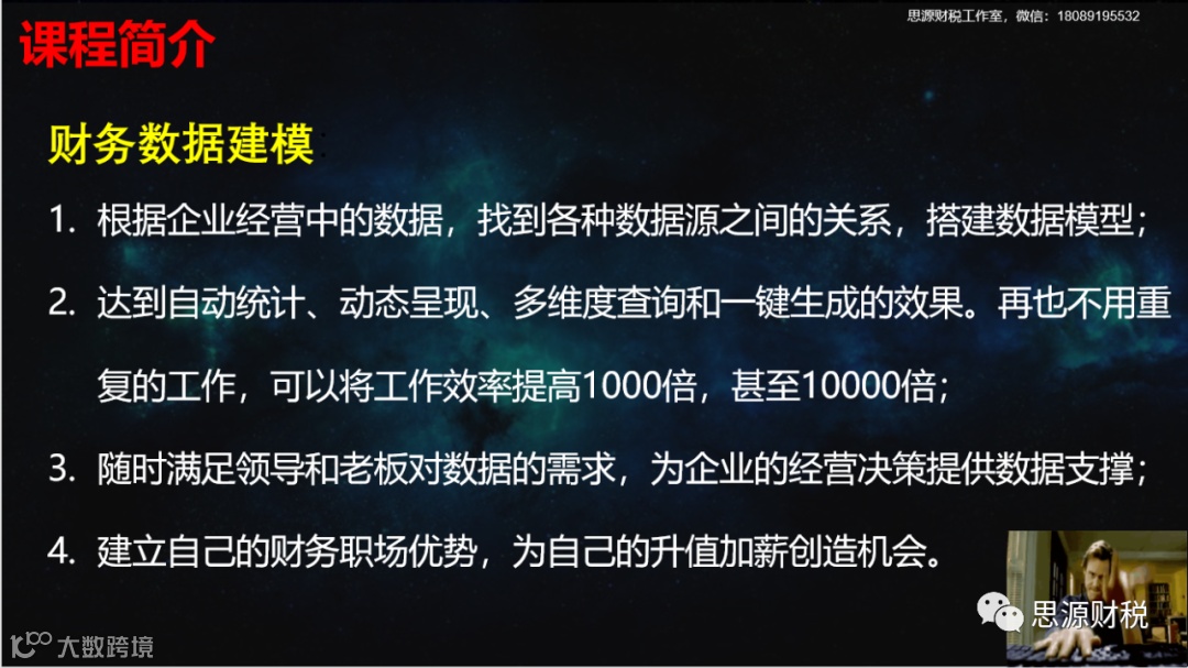 面对企业数据的混乱,很多财务并没有意识,还用以前的老办法进行数据统计。财务人员在数据的管理方面,除了会几个简单的函数,再也没有其他办法,剩下只有不断加班。因此我们将开设线上课程:财务数据建模高阶线上训练营,不用函数,不用VBA,只要动动鼠标就可以轻松建立数据模型,进行数据统计,每月一键生成统计报表和动态图表,将你的工作效率提高1000倍,实现财务职场的弯道超车。
