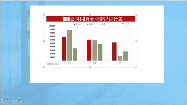 第六步:在PPT中选择图表,右上角第三个漏斗按钮图表筛选器,选择洗面奶-应用,生成1-3月份洗面奶销售统计表,完成要求(2),如图1-7;