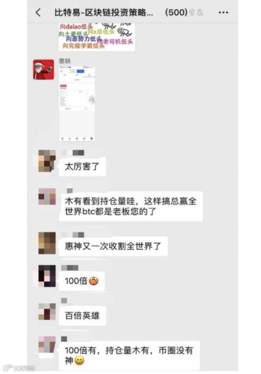 在数字货币期货市场上,惠轶也曾以预测准确出名。在比特易的投资微信群中,他被称为“惠神”。从2017年到2019年初,不少投资者因为听了他的指点而赚钱,这为他本人及其公司产品吸引了不少粉丝。