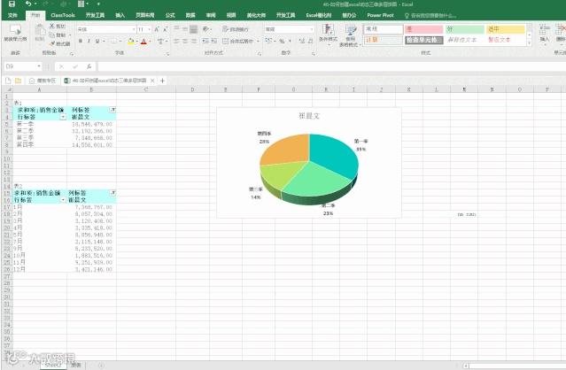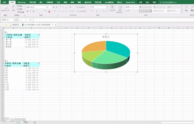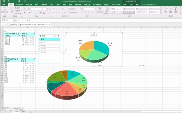 总结:上述动态三维图表的制作,关键点:数据透视表、数据透视图、切片器、三维饼图及图表处理技巧,缺一不可,相对有一定难度。大家可以获取源文件,自己模仿学习。您学会了吗?期待您的反馈。留言区回复“46”可以获取源文件。