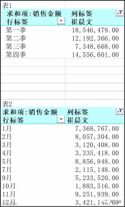 第一步:创建两个数据透视表表1和表2,具体如图1-1;