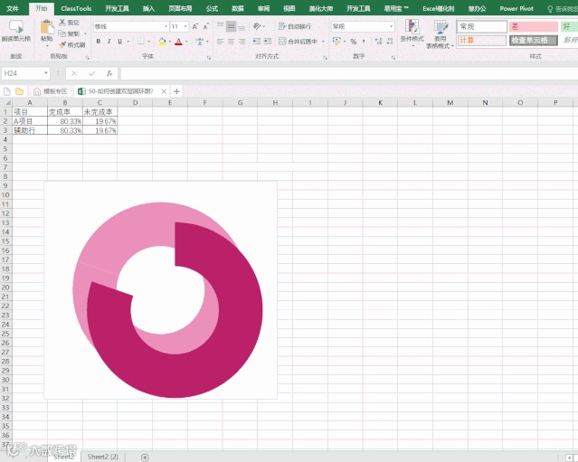 在50篇文章的基础之上,本次分享粗圆环+细圆环组合图,制作的步骤在上一篇的基础之上进一步深化,这样的组合图,层次感更强。今天我们就来分享如何制作。