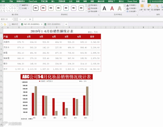 图表制作要求:横坐标显示产品,柱形图为1-6月份图表