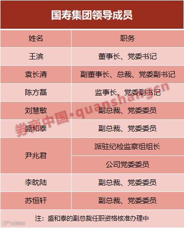 国寿集团在官网更新了高管信息,从此前的7人增至8人,新增的是一位副总裁、党委委员盛和泰。盛和泰排在副总裁刘慧敏之后,为国寿集团排名第二的副总裁。