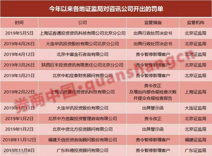 为此,北京证监局近期快速出击,对上海证券通投资资讯科技有限公司(下简称“上海证券通”)北京分公司及大连华讯投资股份有限公司(下简称“大连华讯”)北京分公司违法违规行为立案稽查和行政处罚,有力整治咨询市场乱象,整肃行业纪律,净化市场环境。