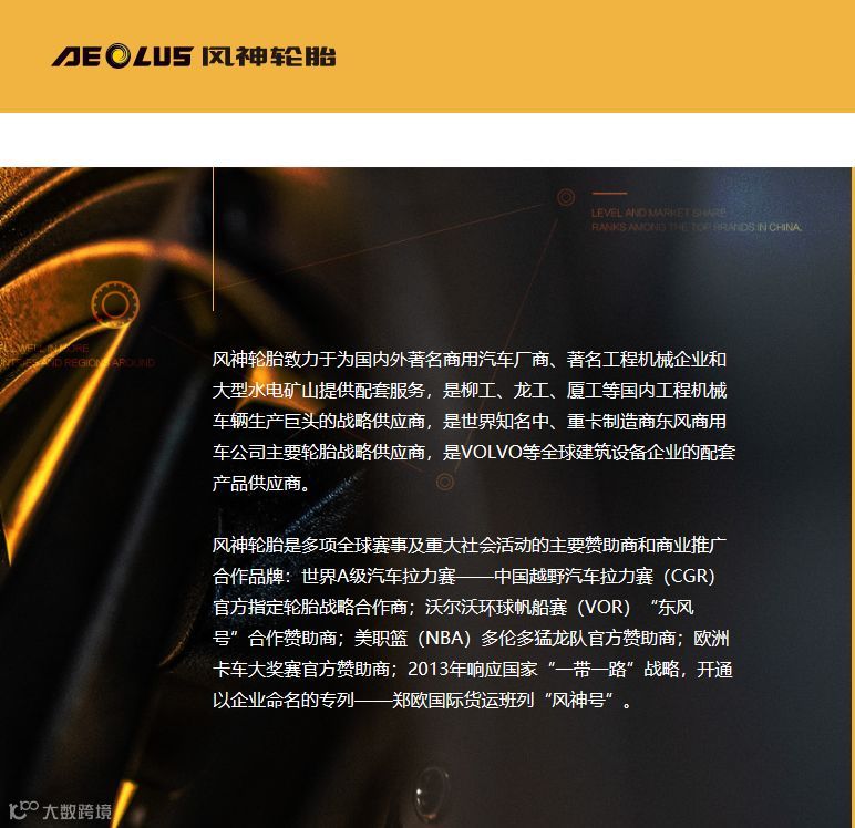 风神轮胎具有世界一流水平的技术研发能力,拥有博士后科研工作站和国家级企业技术中心。公司连续15年成为中国500最具价值品牌,2018年发布的品牌价值达232.82亿元。