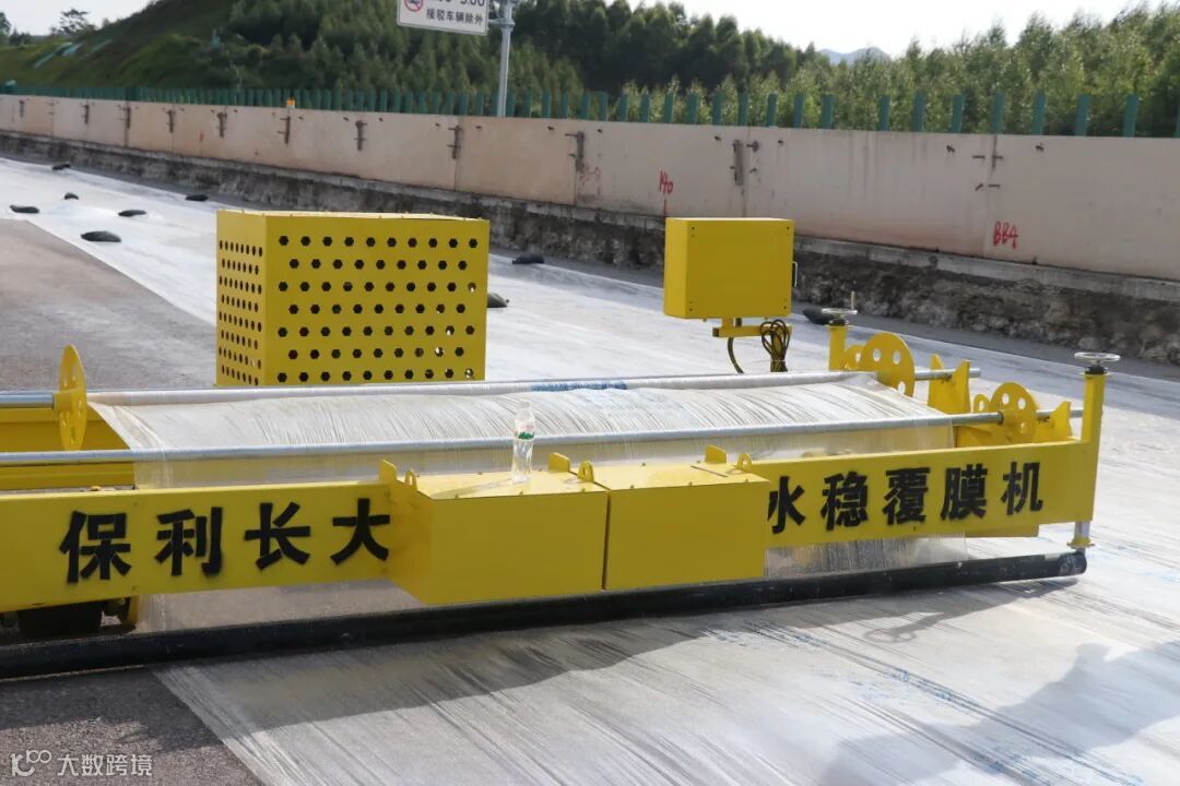 路面水稳层采用“新型材料”——水能量混凝土节水保湿养护膜进行养护,能有效促进早强、抑制微裂缝,提高路面施工质量。该设备为广西壮族自治区内首次应用,养生效果获得业主与参建各方一致好评。