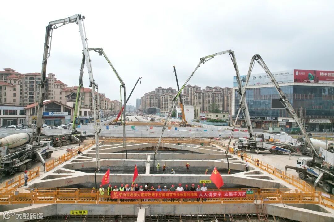 5月13日,中山市坦洲大道项目南坦路下穿隧道主体结构首节顶板成功浇筑,保利长大首个市政类下穿隧道工程建设取得新突破。