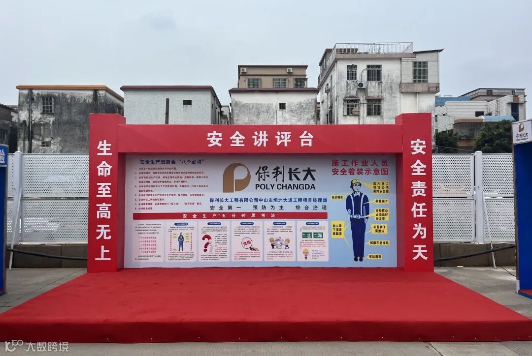项目坚持党建引领安全文化建设,创新落实工人培训学院、安全讲评台、安全防护用品体验馆等教育措施,并联合当地交警部门实施“三阶段支护施工交通管制方案”,提高工人安全生产意识,创造安全施工有利环境。
