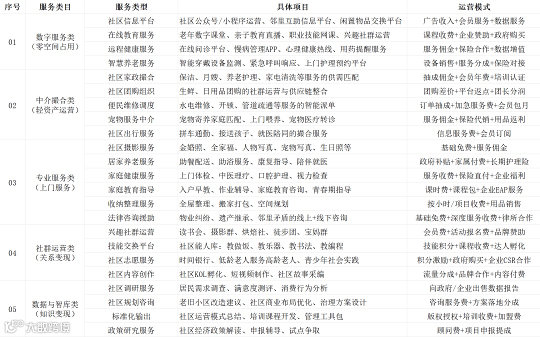 面对这些问题,我们必须转变思路、破局突围,从“靠空间、靠场地”的传统路径,转向“靠服务、靠专业、靠运营”的新型社区经济模式,大力发展不占用物理空间、轻资产、可复制、合规化的社区服务项目,真正实现空间不增、服务扩容、收入提升、管理规范。