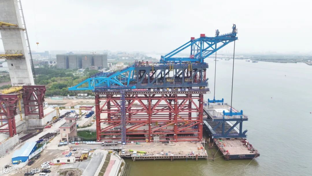 香山大桥全桥主梁共79节梁段,总重达7.9万吨。此次吊装的钢桁梁长25.6米,宽41米,高15.6米,位于大桥边跨及浅滩区。
