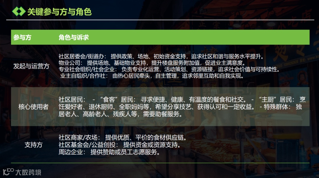 反观社区共享厨房,其内核是“共享”与“参与”。它更多作为一个平台或基础设施存在,为社区居民提供设备齐全的烹饪空间与基础服务。运营主体可能更加多元,包括社会企业、创业者或居民自治组织。其核心不在于直接提供成品菜肴,而在于赋能居民自己动手,或开展小范围的饮食社交、技能交换。在这里,“厨房”从家庭的私有领域转变为社区的半公共空间。居民从被动的食客,转变为主动的参与者、创造者甚至小型活动的组织者。共享厨房的活力,恰恰依赖于用户的参与深度与社区网络的生成,其价值实现于使用过程而非单纯的消费结果。