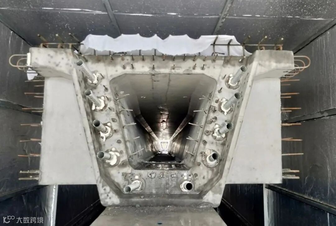 梁场在钢筋绑扎环节采用胎架整体式吊装入模,浇筑时配备附着式高频振捣器振捣、智能蒸养系统和自动喷淋养生系统,确保预制梁处在恒温、恒湿状态,保障预制梁混凝土外观达到有镜面效果且无垫块印的新标准,切实提升了预制梁品质。