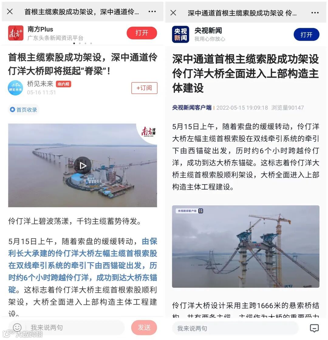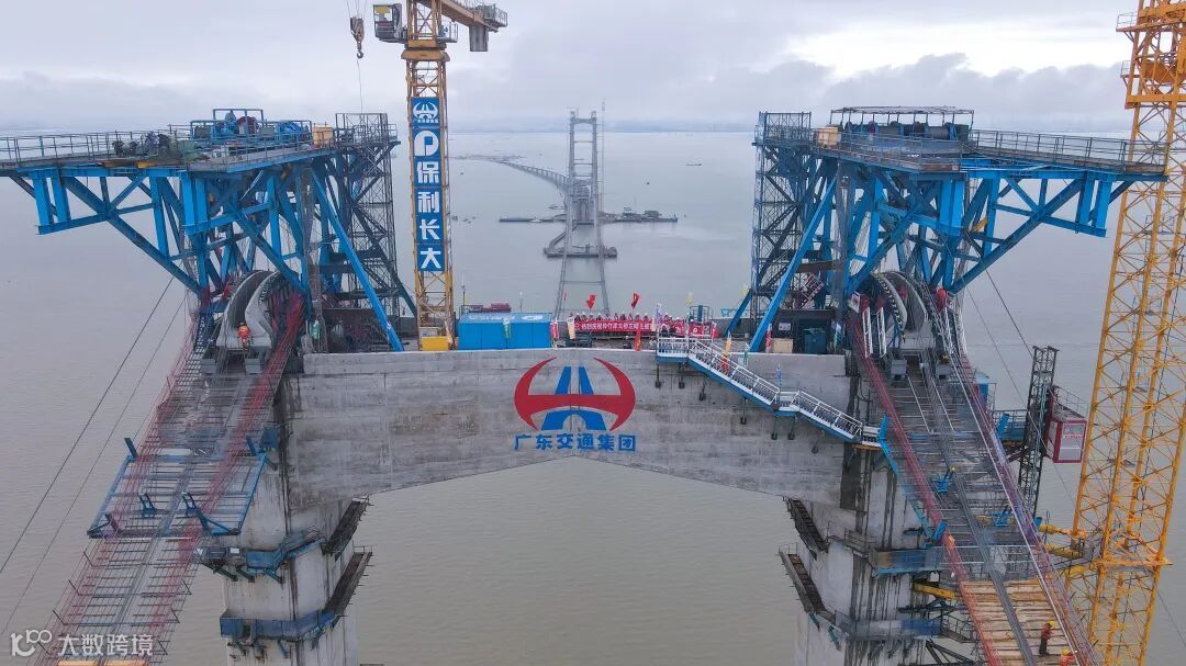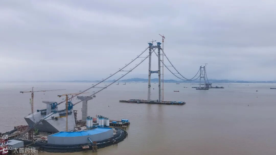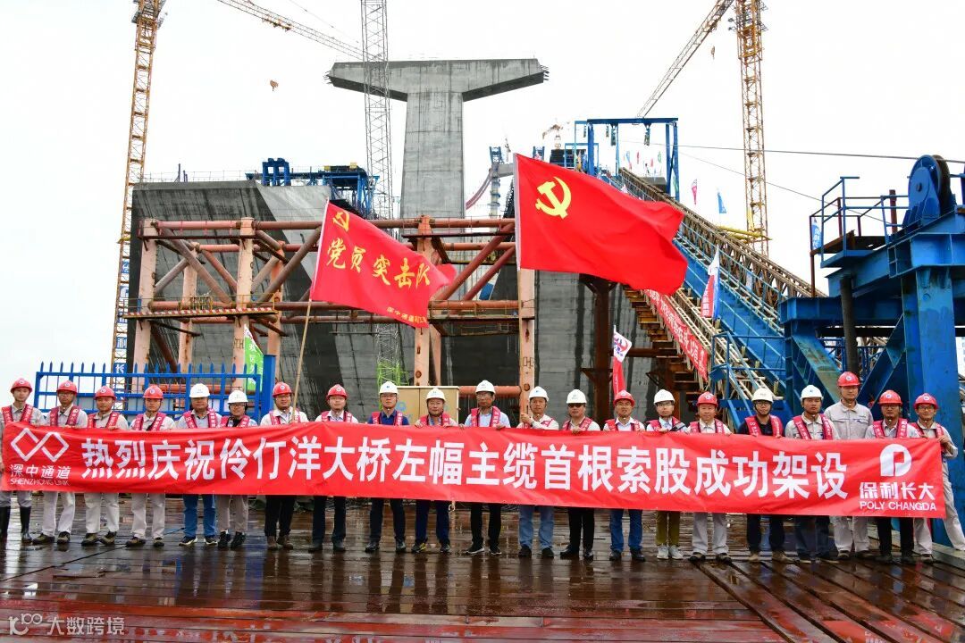 这标志着伶仃洋大桥主缆首根索股顺利架设,大桥全面进入上部构造主体工程建设阶段。