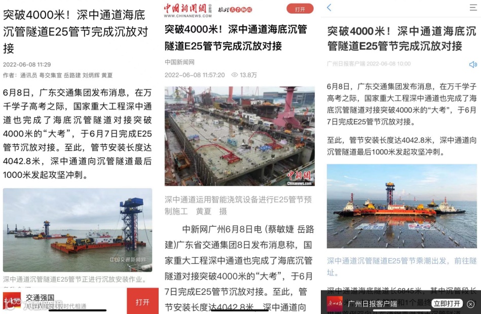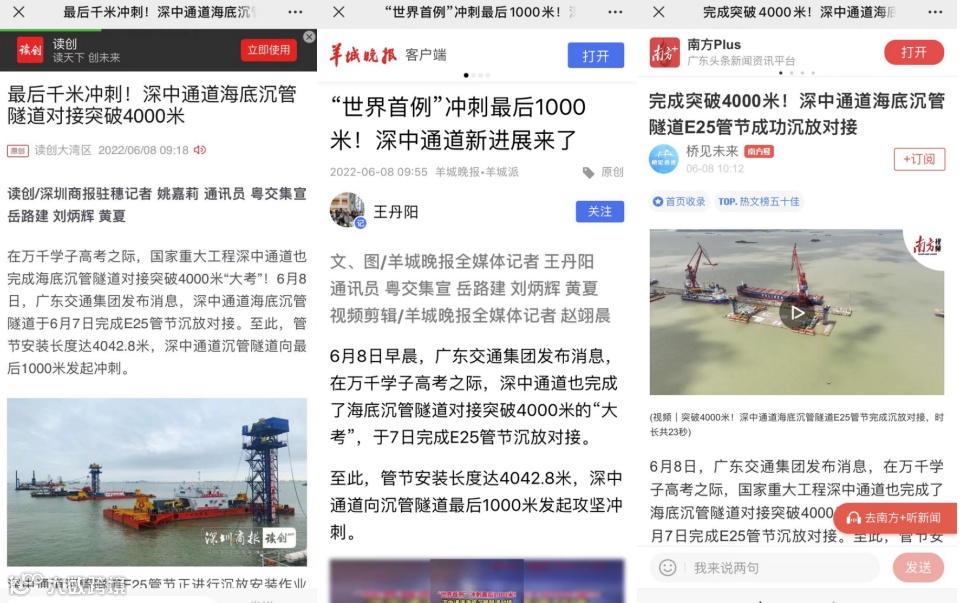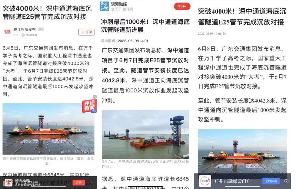 6月8日,在万千学子高考之际,粤港澳大湾区超级工程深中通道也完成了海底沉管隧道对接突破4000米的“大考”。