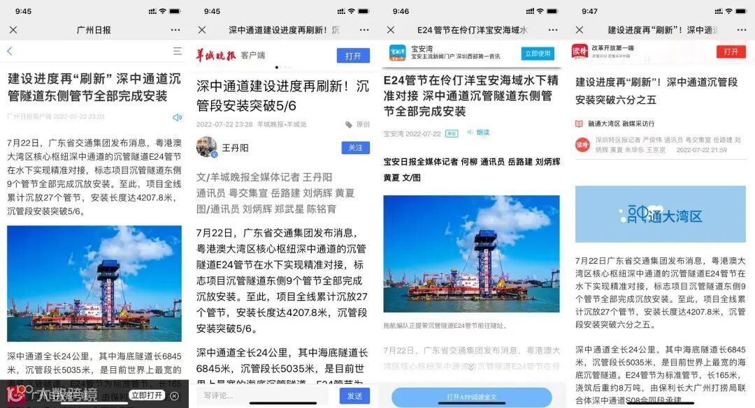 7月22日,由保利长大深中通道S08合同段承建的标准钢壳沉管管节——E24管节在水下实现精准对接,标志项目沉管隧道东侧9个管节全部完成预制沉放安装。