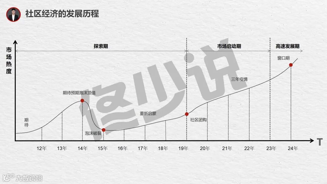 那么20年到22年,为社区经济的快速发展奠定了基础,那就是三年的疫情,大家封在小区里出不去,社区团购的价值凸显,也让大家意识到了,家门口的消费的价值。