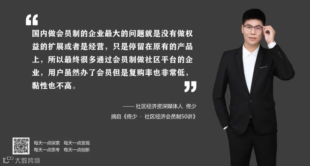 国内做会员制的企业最大的问题就是没有做权益的扩展或者是经营,只是停留在原有的产品上,所以最终很多通过会员制做社区平台的企业,用户虽然办了会员但是复购率也非常低,黏性也不高。