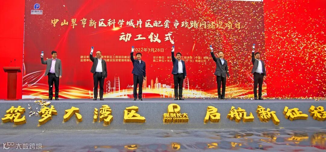 3月28日,保利长大市政公司承建的中山市翠亨新区起步区科学城片区配套市政路网建设工程在马鞍岛举行动工仪式,中山市委常委、副市长李振家宣布项目开工。
