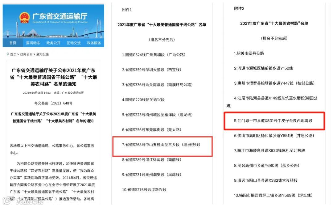 10月8日,广东省交通运输厅公布2021年度广东省“十大最美普通国省干线公路”“十大最美农村路”名单,保利长大建设的省道S268线中山五桂山至三乡段(坦洲快线)获评“十大最美普通国省干线公路”,恩平市县道X831线牛皮仔至良西那湾段获评“十大最美农村路”。