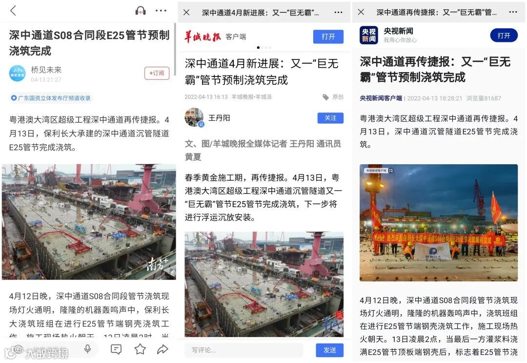 粤港澳大湾区超级工程深中通道再传捷报。4月13日,保利长大承建的深中通道沉管隧道E25 管节完成浇筑。