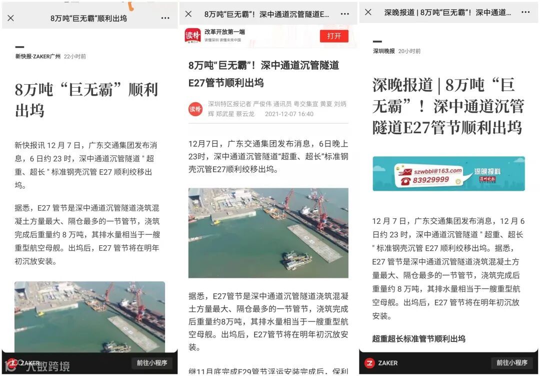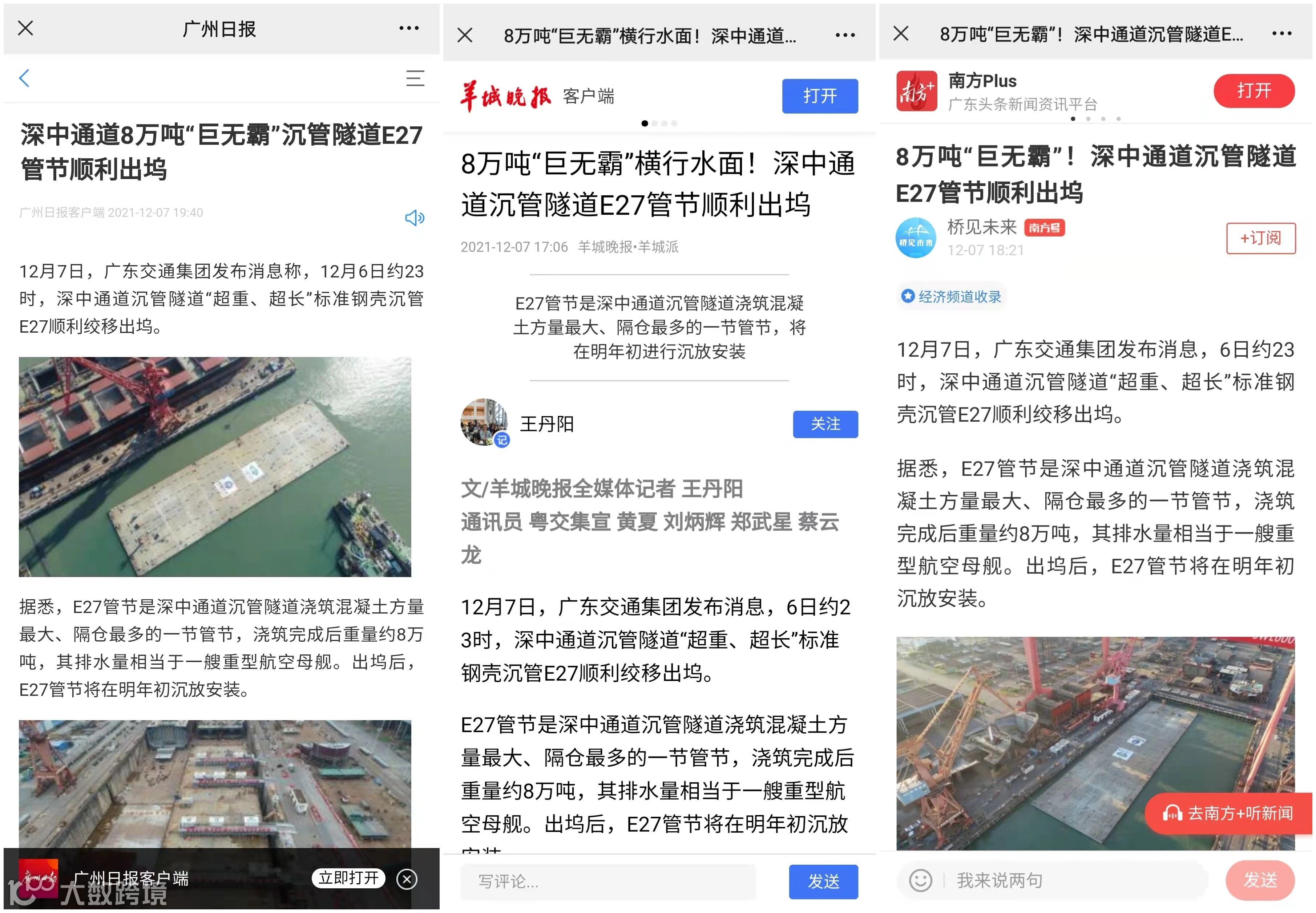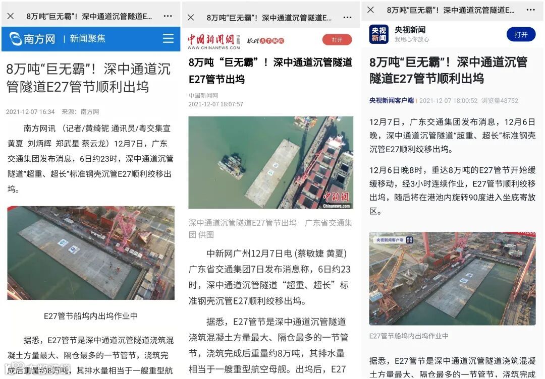 12月6日晚约23时,保利长大深中通道S08合同段项目“超重、超长”标准钢壳沉管E27管节顺利绞移出坞。