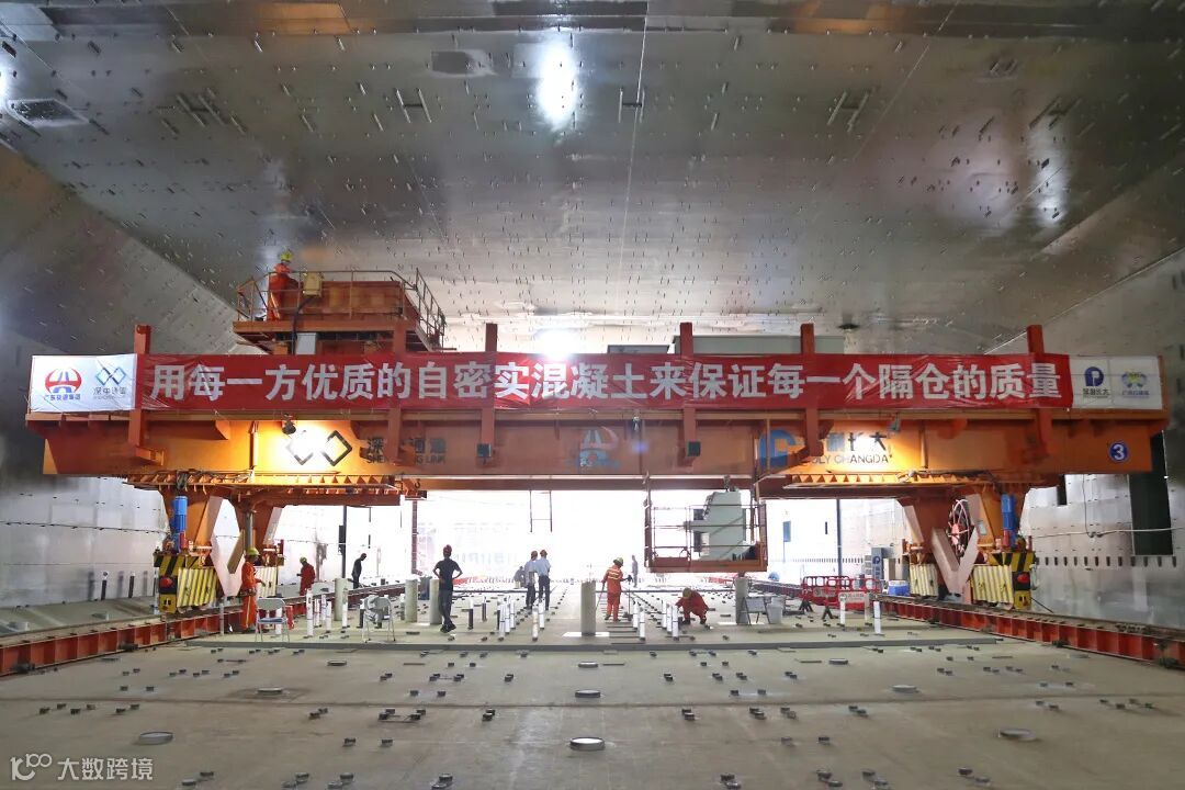 E27管节是深中通道沉管隧道东端第6个管节,也是浇筑混凝土方量最大、隔仓最多的一节管节,长165米、高10.6米、宽46米,浇筑自密实混凝土约2.93万方,浇筑完成后重量约8万吨,其排水量相当于一艘重型航空母舰。