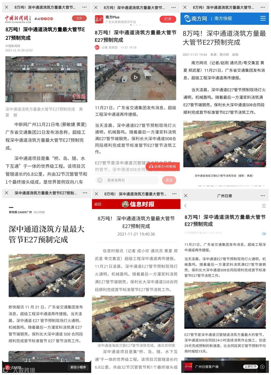 11月21日,超级工程深中通道再传捷报。随着最后一方灌浆料浇筑满E27管节端钢壳,保利长大深中通道S08合同段顺利完成首节标准管节E27管节浇筑工作。