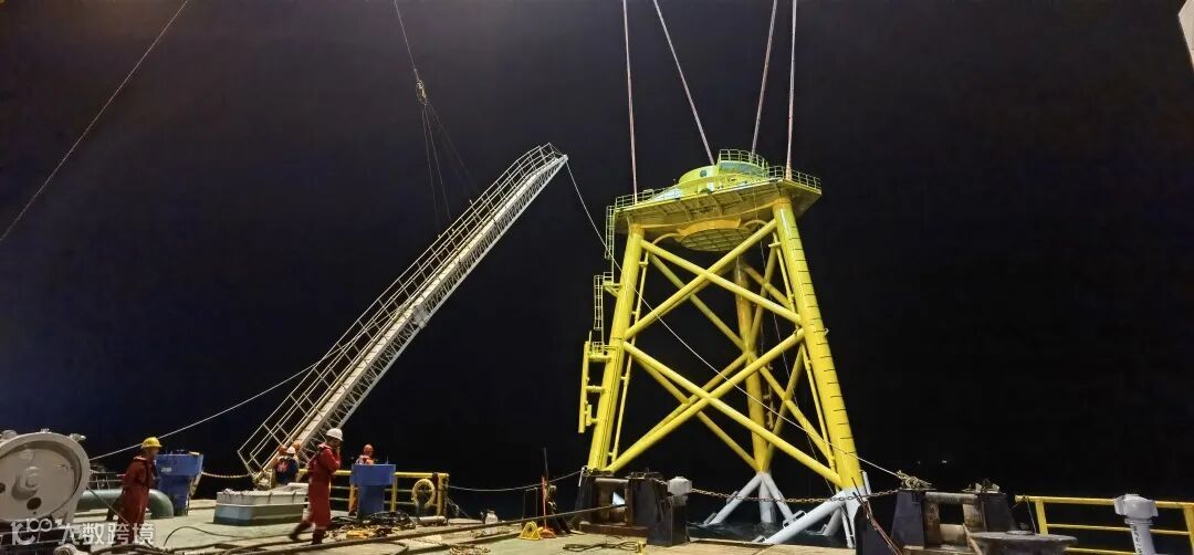 正月初二,保利长大三峡海上风电项目团队整装出发,海上施工风场一片大干场景。短短5天时间,完成了43号机位导管架吊装、50号机位灌浆及41号机位作业下平台转移准备工作,吹响今年决战决胜的号角。