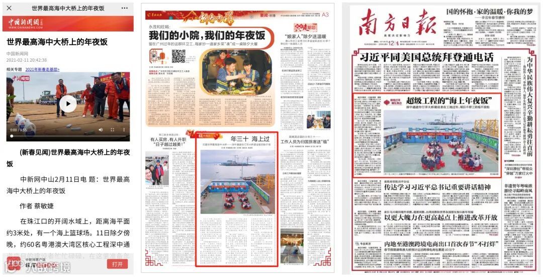 中新网、南方日报、羊城晚报关注深中通道S05标项目海上年夜饭并刊发报道
