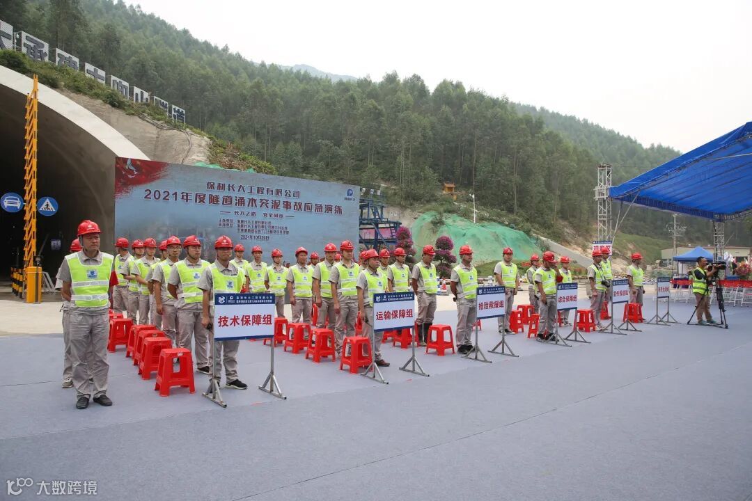 “隧道涌水了,快跑!”伴随着一阵急促的呼救声、脚步声,10月29日下午15:30分,保利长大组织开展的“隧道涌水突泥事故”应急演练,在银洲湖高速TJ06标古兜山隧道出口端正式上演。