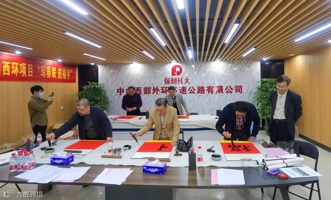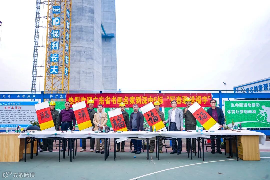 为落实春节留年关爱举措,营造祥和的节日氛围,弘扬优秀传统文化,1月21日至22日,保利长大组织开展“写春联、送祝福”慰问活动,邀请来自广东省政府文史研究馆、中国书法家协会、中国文化艺术研究中心的姚永全、陈凯、观鹏程、黎艺豪、陈许等5名书画名家,到深中通道S05标、中山西环等建设项目创作了200余副春联与福字,为大家送上新春的祝福和工程建设攻坚克难的精神助力。