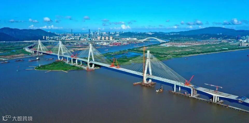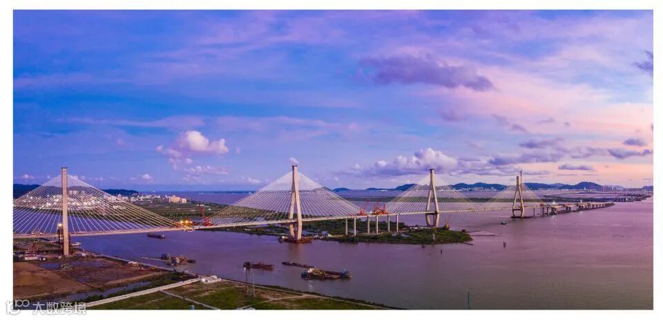 洪鹤大桥是由两座主跨为500米的双塔双索面叠合斜拉桥串联而成的高速公路桥,500米的单孔跨度居珠海桥梁之最,填补了世界上大跨度串联斜拉桥建设空白。