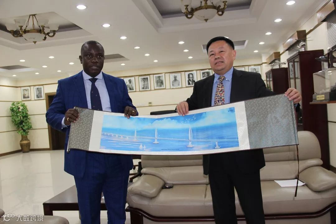 加纳国防部长对我方赠送的《港珠澳大桥》丝织画卷表示感谢,对港珠澳大桥的规模宏大表示震撼,对保利长大的施工与技术实力表示钦佩,期待将来访华时能亲自参观大桥。