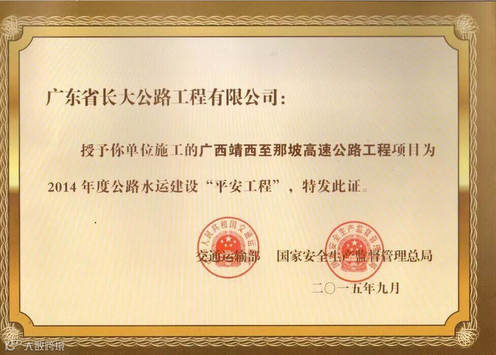 项目被国家交通运输部评为“平安工程”示范项目