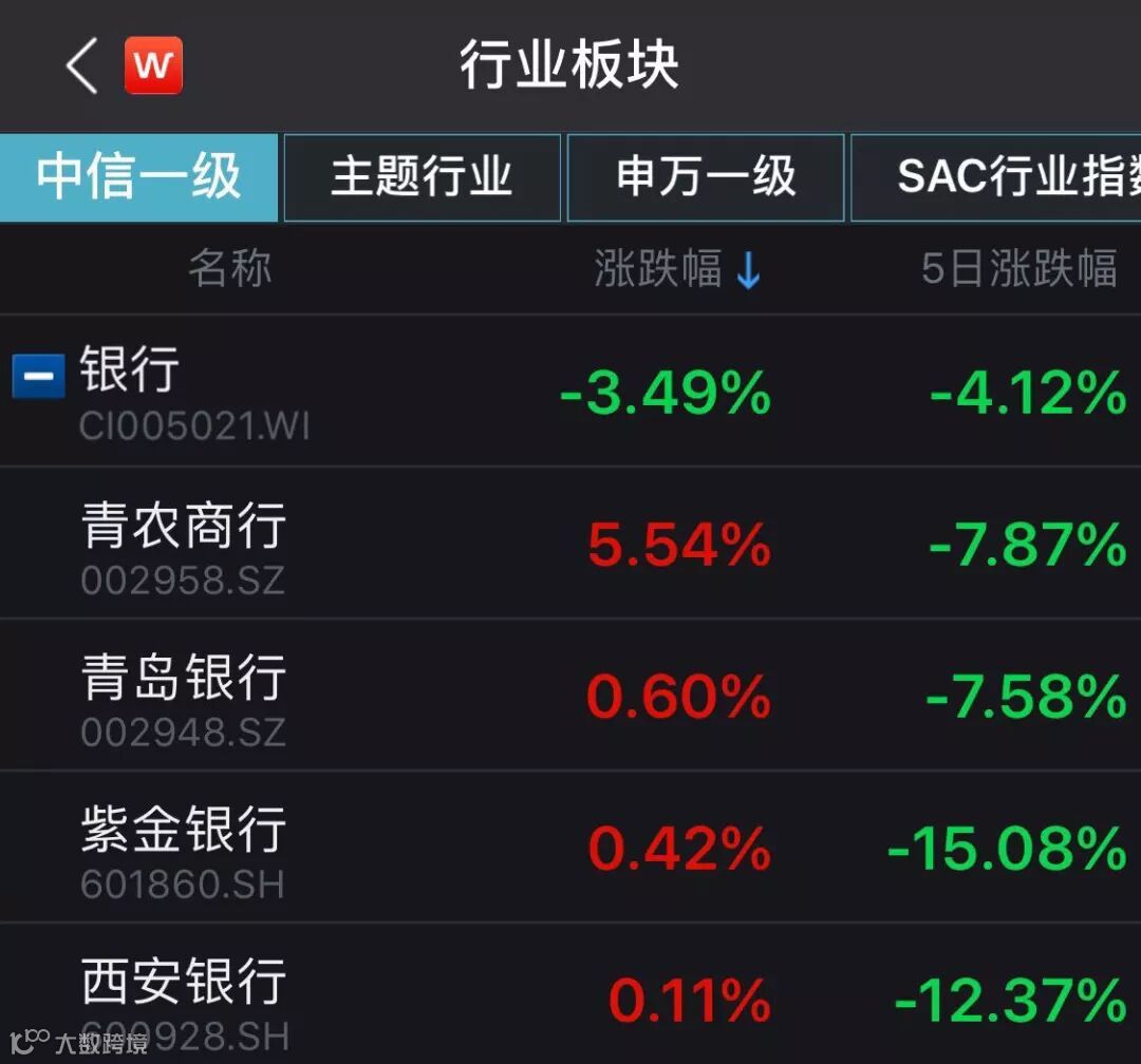受此利好消息影响,今日开盘后,银行股异动拉升,青农商行一度冲击涨停,青岛银行、西安银行、紫金银行亦有上涨表现。不过,今日大盘的整体表现则不如人意,截至记者发稿前,沪深两市跌幅均扩大至5%以上。