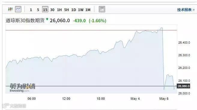 具体来看,5月6日亚市早盘,现货黄金一度拉升约5美元。道指期货跌近500点,标普500期指一度跌1.7%,纳指期货跌超2%。